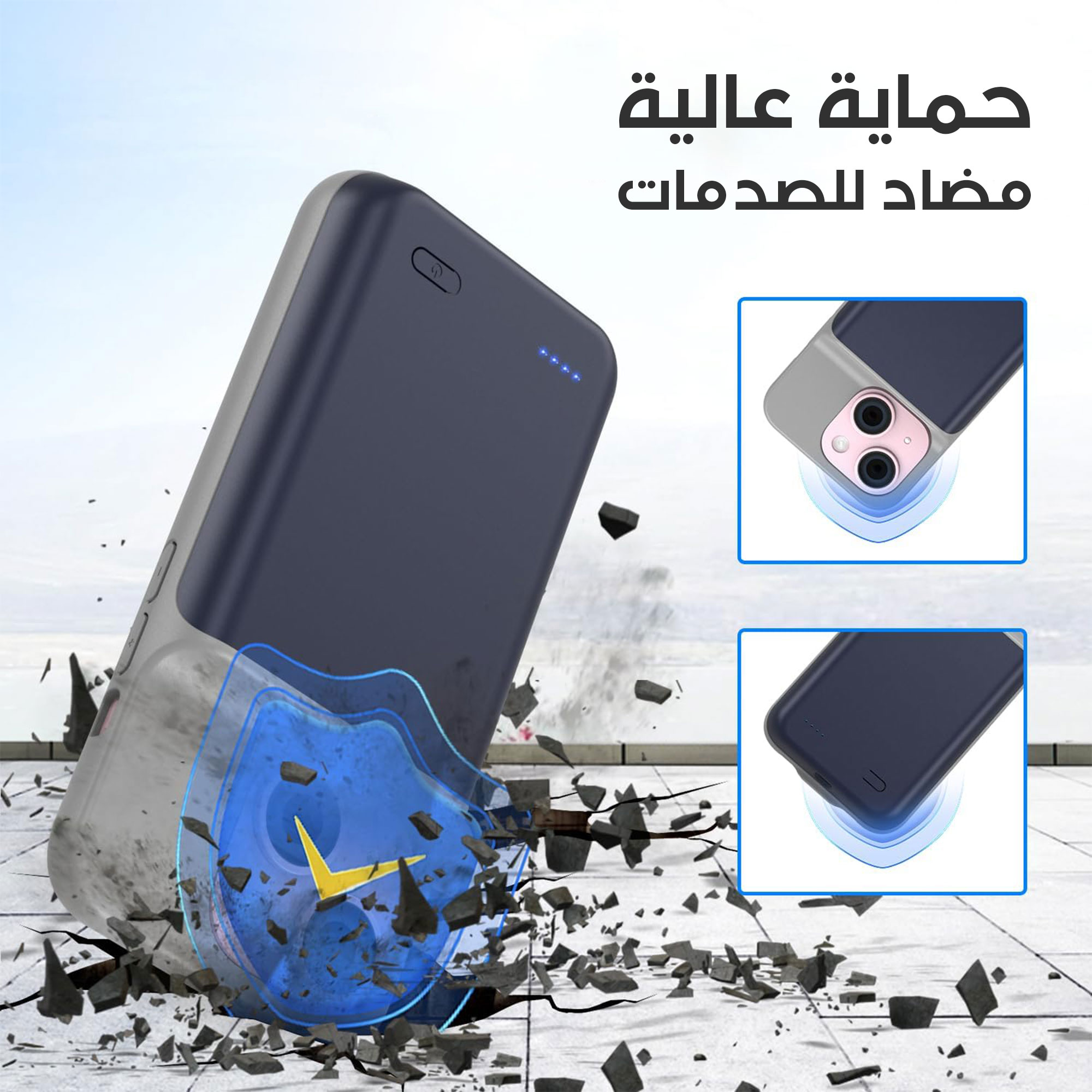 كفر أنيق وعصري يجمع بين حماية متكاملة وباور بنك مدمج بسعة 6800mAh يشحن جوالك في أي وقت وأي مكان متاح لايفون 15 برو وايفون 13 .